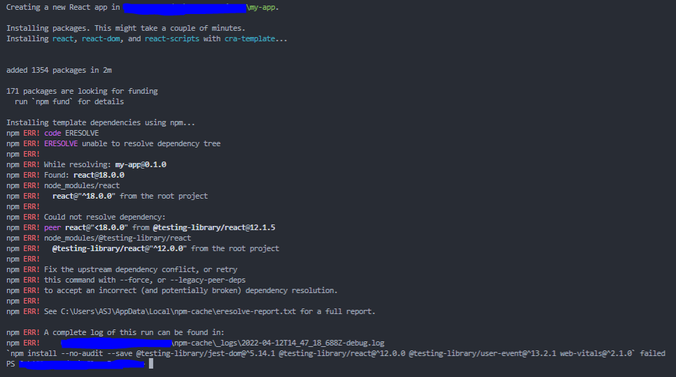 ERESOLVE unable to resolve dependency tree 해결하기