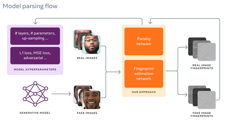 이런 상황에서 페이스북 AI는 지문 추정 네트워크(Fingerprint Estimation Network, FEN)를 통해 딥 페이크 생성 모델이 남긴 일종의 지문에 대한 세부 정보를 추정하는 작동 원리를 적용한 리버스 엔지니어링을 사용합니다. 이는 단일 딥 페이크 이미지를 생성하는 데 사용된 AI 모델의 고유 패턴, 사용된 모델의 속성, 딥 페이크 모음의 패턴들 사이에서 유사점 추적을 통해 하나의 소스에서 유래했는지 등 근본적인 더 많은 정보 추론이 가능하게 합니다.