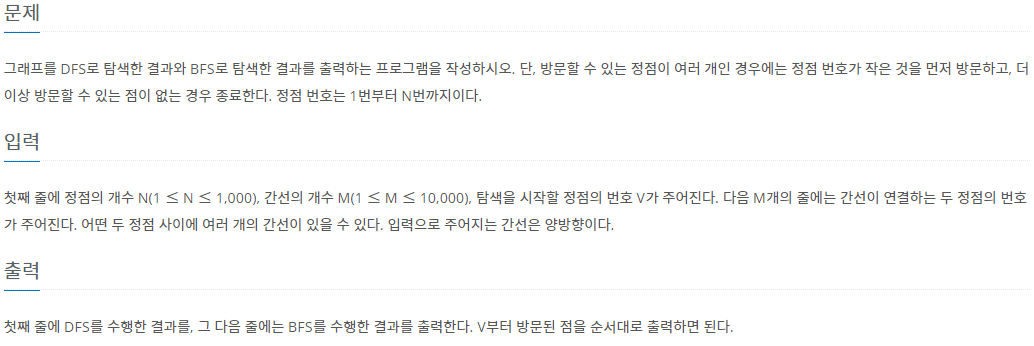 문제 출처: https://www.acmicpc.net/problem/1260