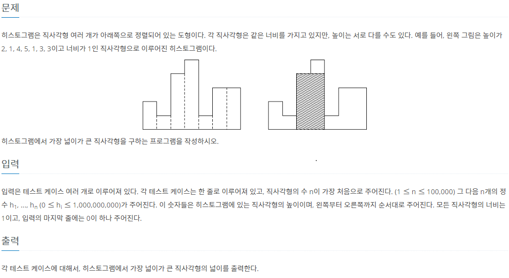 우선 풀었을 때, 첫 플래티넘 문제라는 것이 신기하고 좋았다. 분할 정복법의 큰 틀에서 벗어나지 않은 형식인 것 같은데, 의외로 난이도가 있었다는 이야기 같다. 말한 대로 이 문제는 재귀를 통한 분할 정복법을 이용한다. 주어진 높이 리스트를 반을 가른 후, 그 반의 왼쪽에 있는 높이들 중에서 가장 큰 넓이, 반의 오른쪽에 있는 높이들 중 가장 큰 넓이, 그리고 가운데 선을 포함하여 가장 큰 넓이를 각각 구한다. 그리고 이 셋 중 가장 큰 넓이를 반환하면 된다.